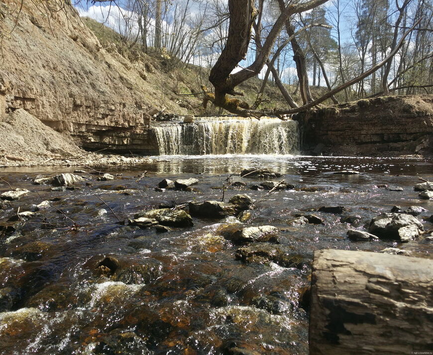 Мост ниже водопада у красного пруда. Река берет свое начало в области деревни большое коновалово. Водопад искусственного происхождения, доступен в любое время года. Река через шлюпочный канал впадает в финский залив.